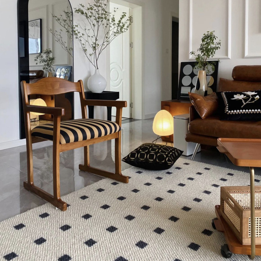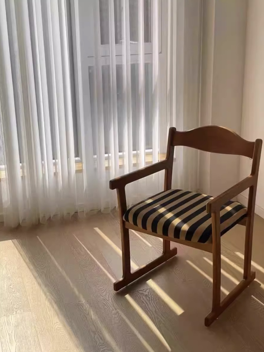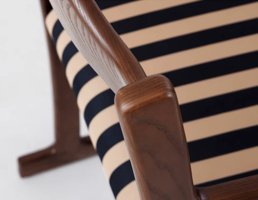 스트라이프 팔걸이 원목 체어