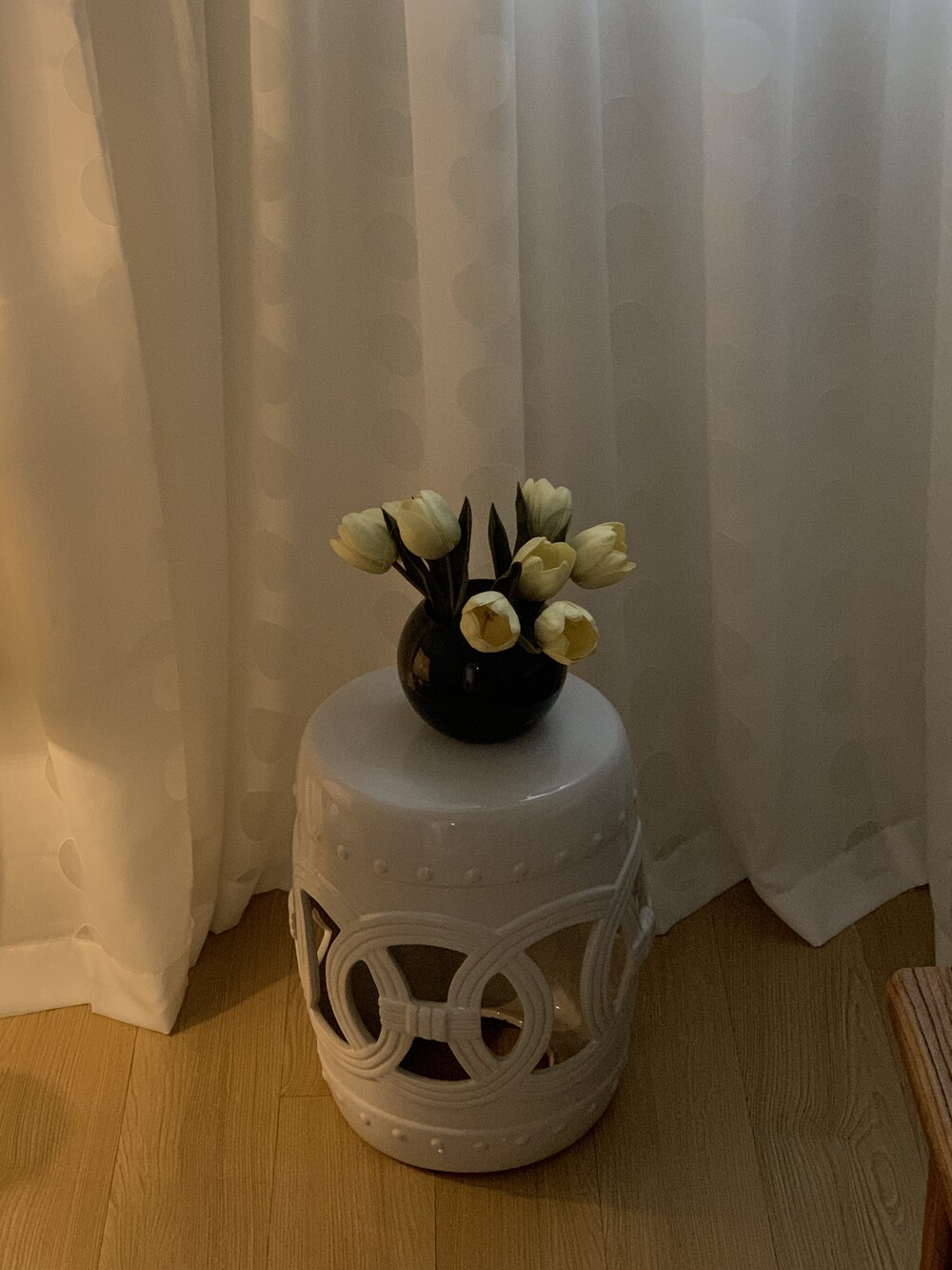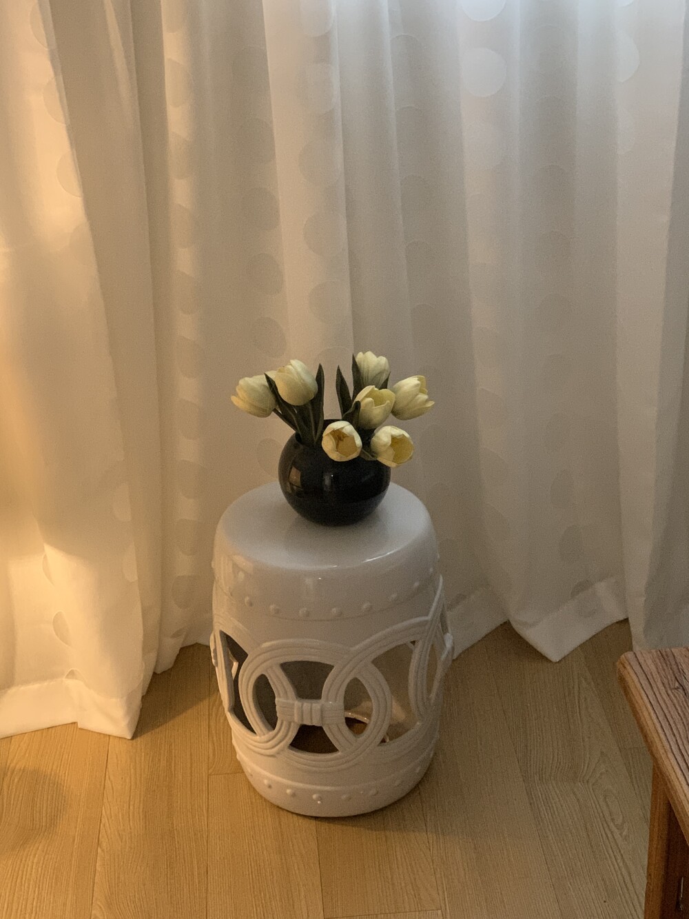 세라믹 원통 스툴이에요.