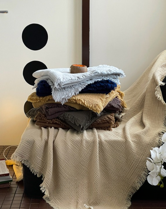 17colors 면100% 침실 소파 담요 태슬 블랭킷