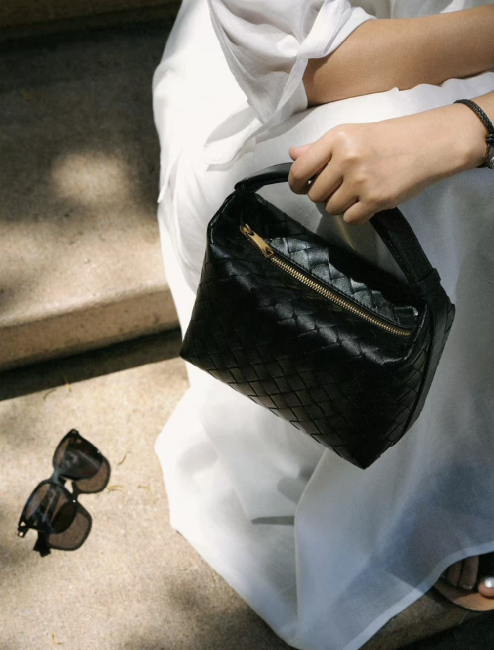 only homepage 양가죽 위빙 토트앤숄더백