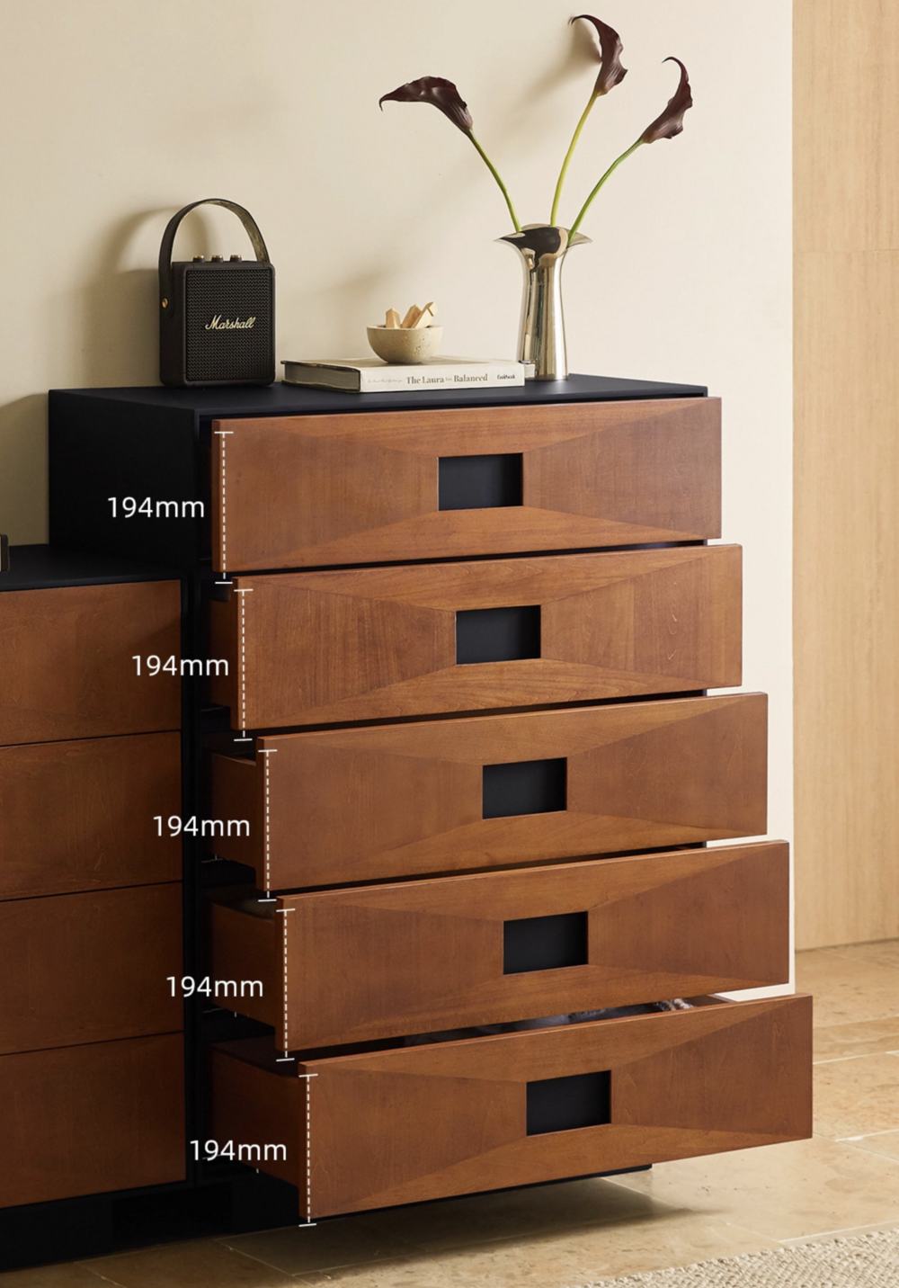 3colors 프리미엄 원목 스퀘어 유니크 5단 서랍장