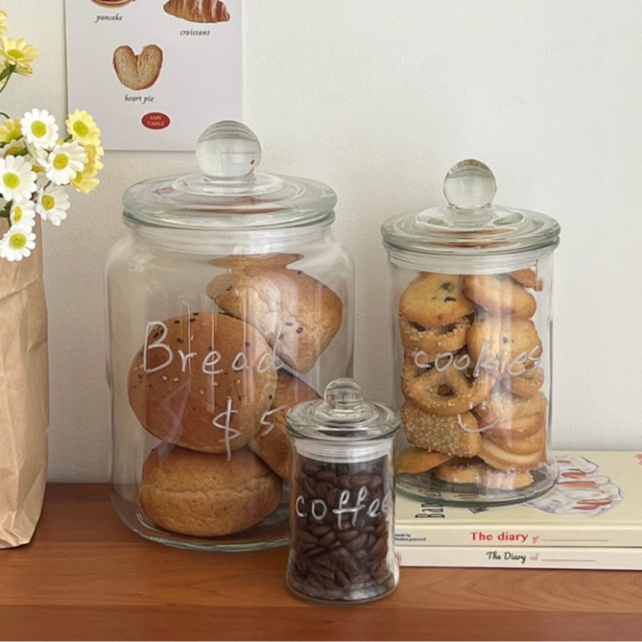 6sizes 감성 유리병 뚜껑있는 글라스 용기