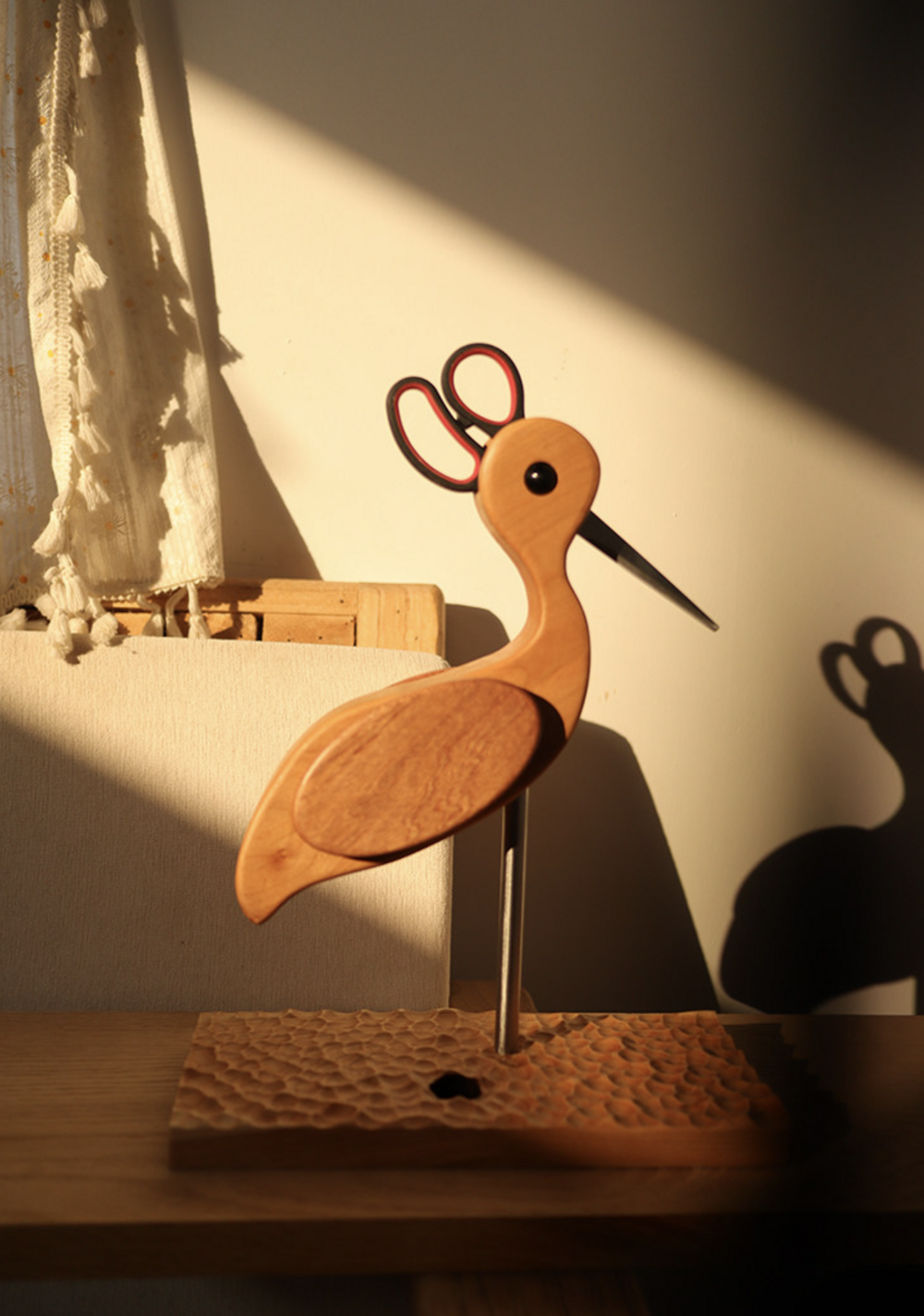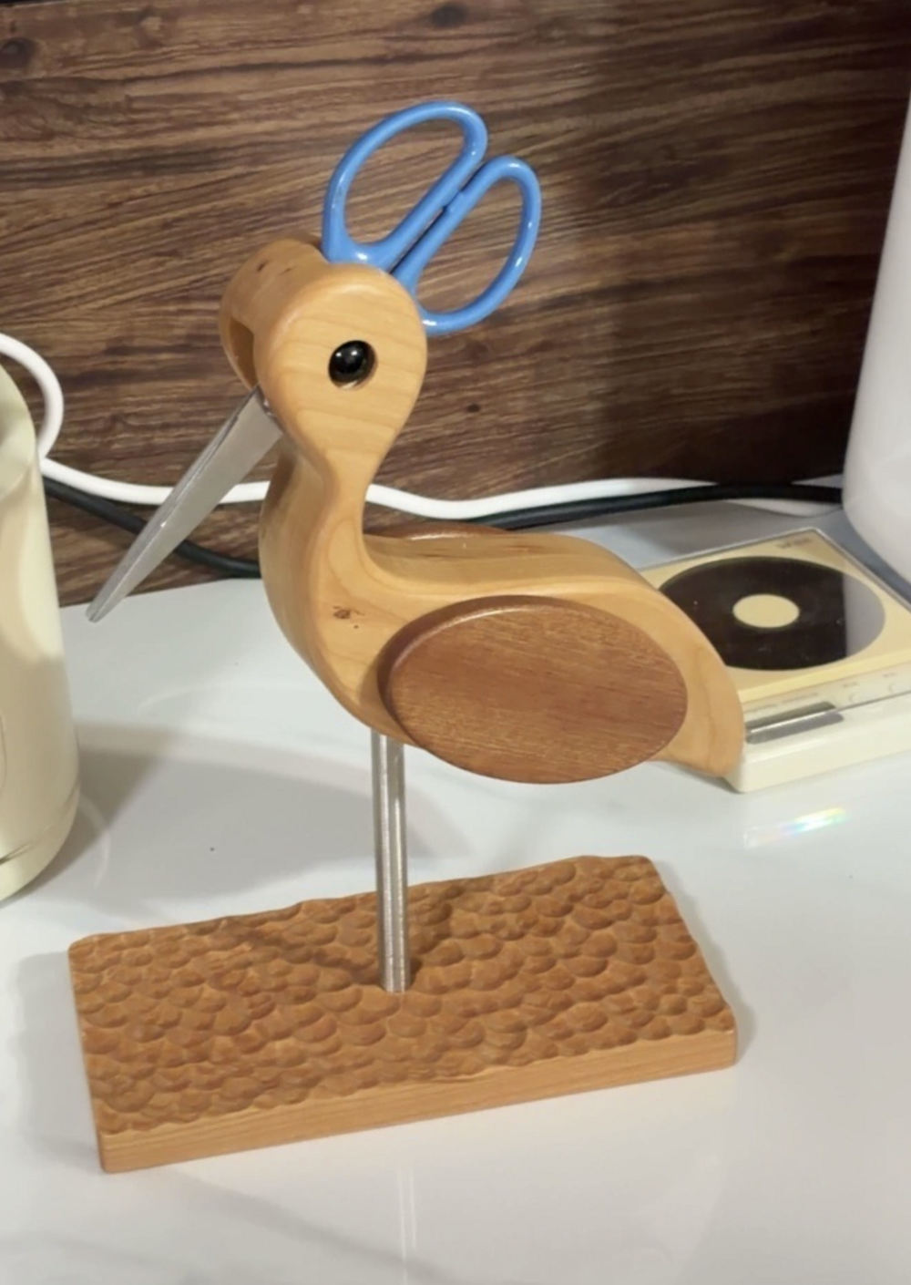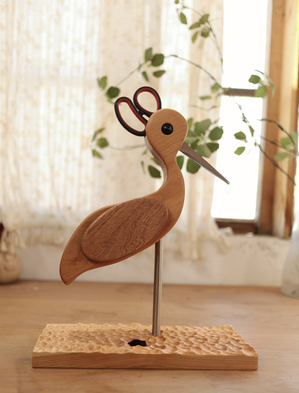 원목 학 모양 가위꽂이