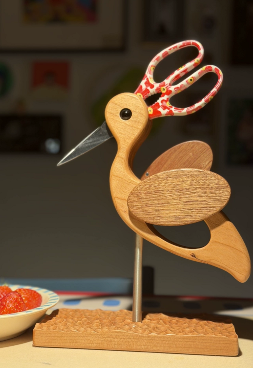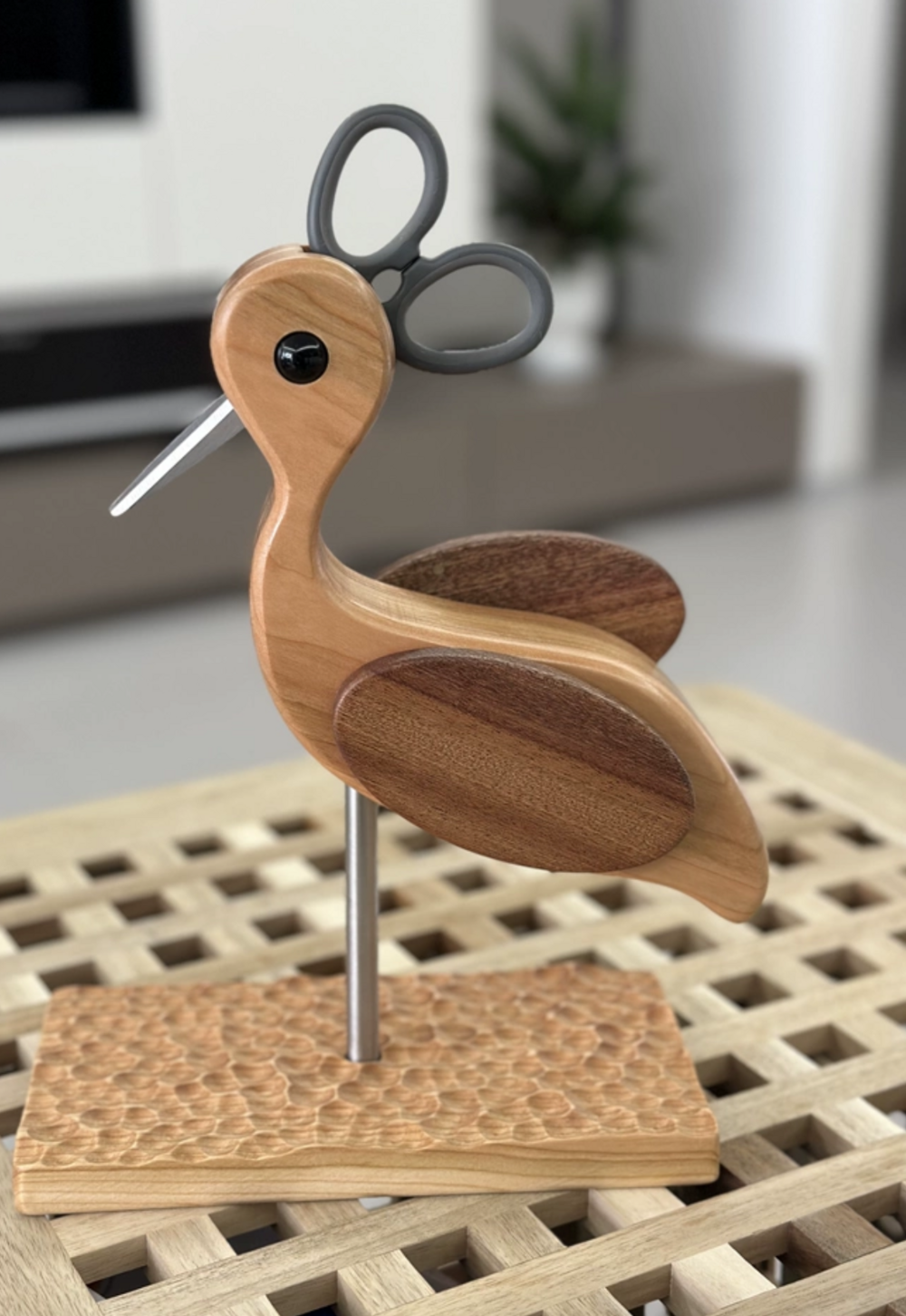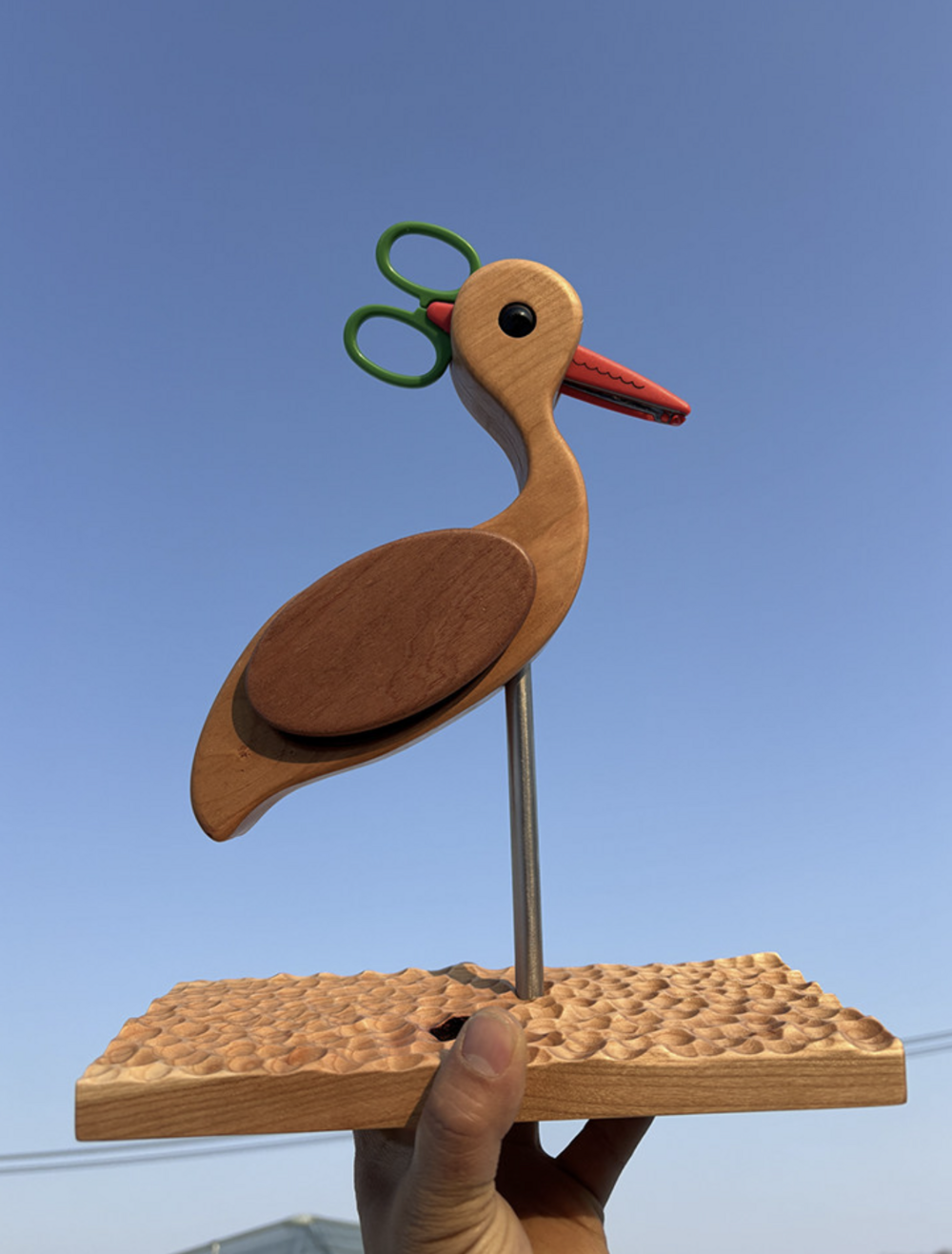 원목 학 모양 가위꽂이