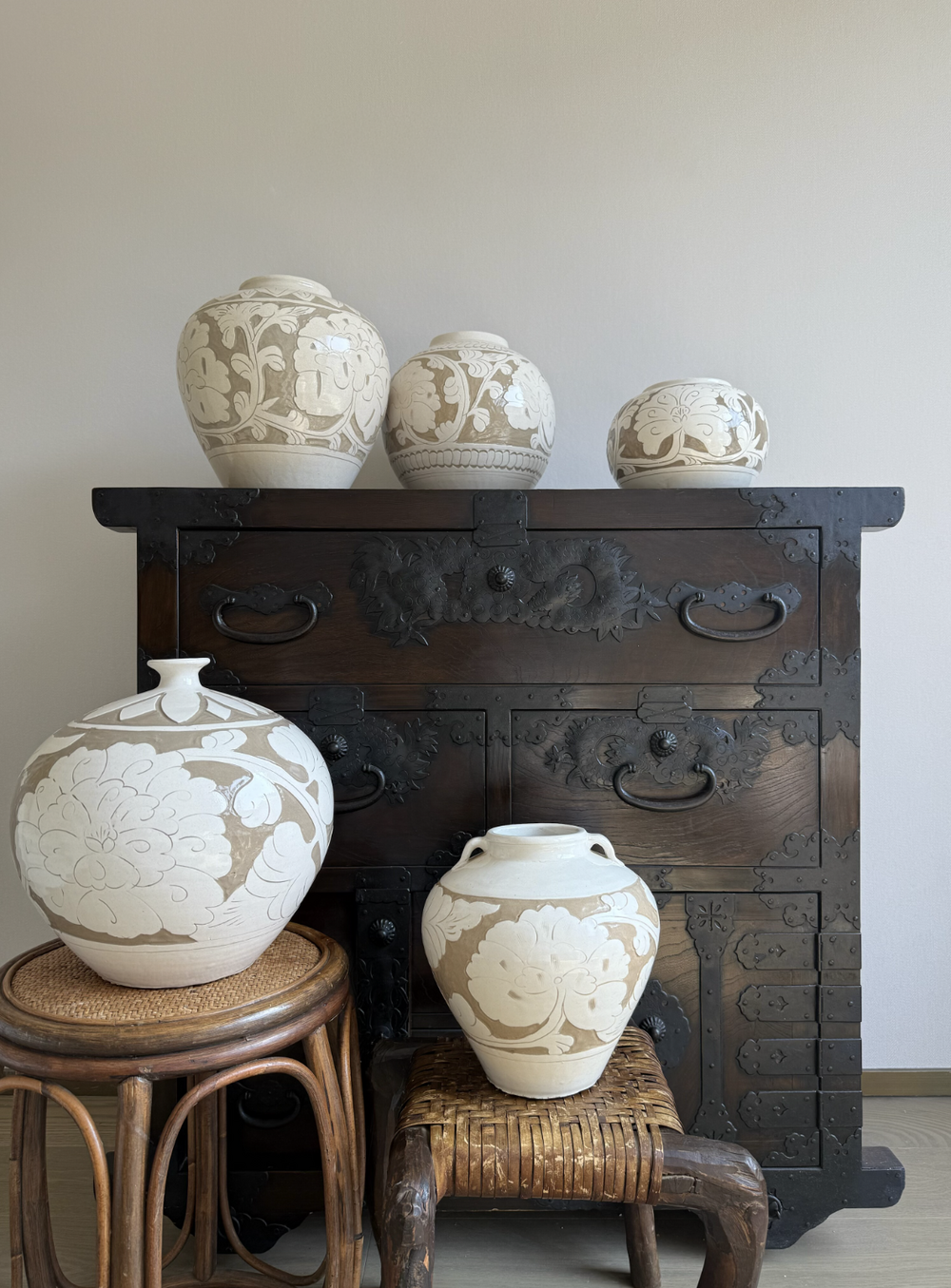 이런 동양적 무드의 항아리들은